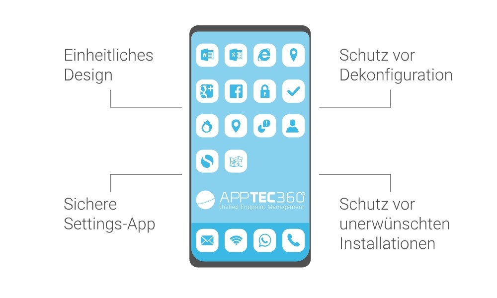 „Mobility First“ steigert nachweislich die Produktivität – stellt IT-Abteilungen jedoch vor große Herausforderungen: Unterschiedliche mobile Geräte müssen zentral verwaltet und sensible Unternehmensdaten zuverlässig geschützt werden. Mit AppTec360 Endpoint Manager nutzen Unternehmen das volle Potenzial mobiler Strategien . Und das bei maximaler Sicherheit.