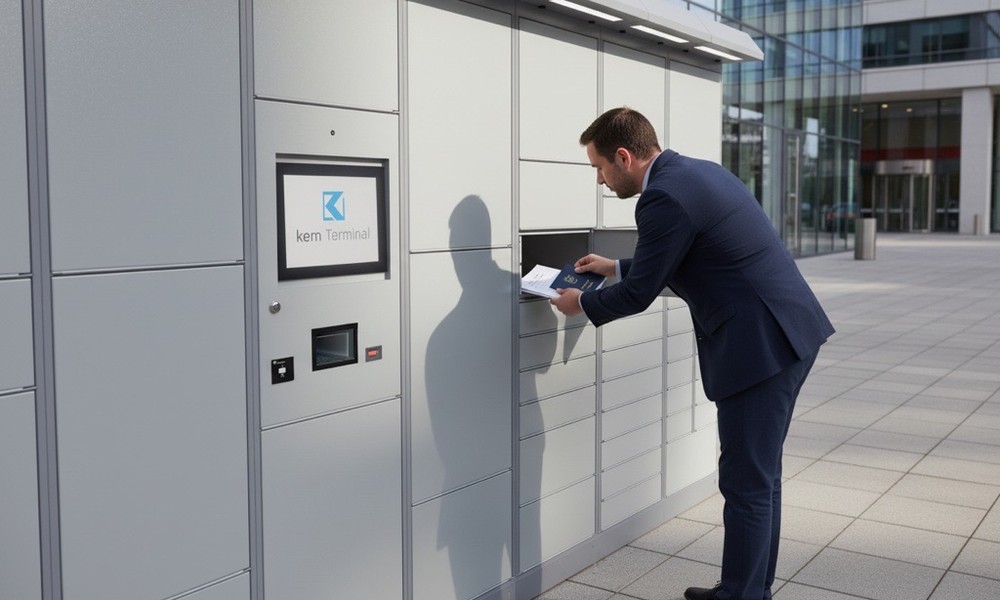 Das serviceTerminal ist ein kommunales Ausgabe- & Rücknahmesystem für Ausweise, Dokumente, Kfz-Kennzeichen & mehr. Es ermöglicht einen modernen Bürgerservice 24/7 und erhöht die Erreichbarkeit kommunaler Leistungen. Das System kann im Innen-/Außenbereich von Verwaltungsgebäuden eingesetzt werden. Durch die Automatisierung standardisierter Prozesse werden Wartezeiten reduziert, Abläufe transparent gestaltet & kommunale Haushalte nachhaltig entlastet. Als sichtbares Element der digitalen Transformation unterstreicht das serviceTerminal den Innovationsanspruch der Kommune. DSGVO-konforme Prozesse, dokumentierte Ablage/Abholung sowie elektronisch fernsteuerbare Schließsysteme sorgen für hohe Betriebssicherheit & eine positive Außenwirkung als bürgerfreundlicher Standort.